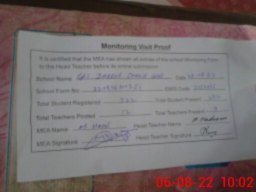 | Certified that this School was Inspected by the Undersigned MEA/DMO Today and the Information Stated Above is as Per Record. | |||||