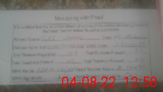 | Attendance Register | Head Teacher | MEA with School | Visit Proof |