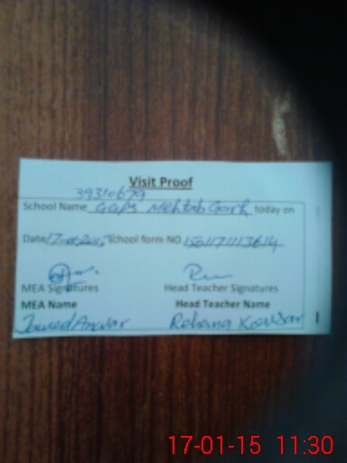 | Attendance Register | Head Teacher | MEA with School | Visit Proof |