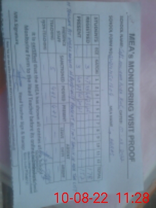 | Certified that this School was Inspected by the Undersigned MEA/DMO Today and the Information Stated Above is as Per Record. | |||||