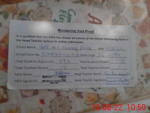 | Attendance Register | Head Teacher | MEA with School | Visit Proof |