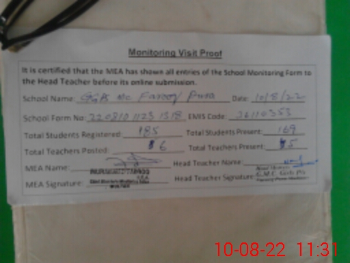 | EMIS Code: 36110353 | Name of School: GGPS MC FAROOQ PURA MULTAN | |||