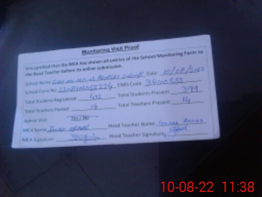 | Certified that this School was Inspected by the Undersigned MEA/DMO Today and the Information Stated Above is as Per Record. | |||||