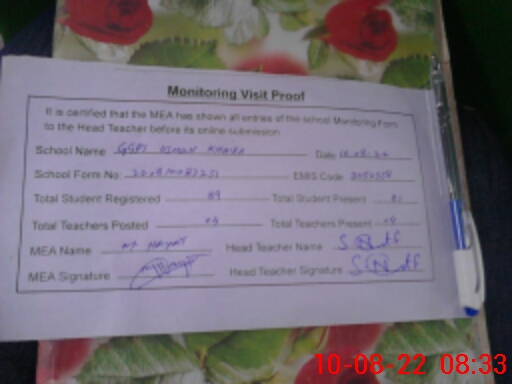 | Certified that this School was Inspected by the Undersigned MEA/DMO Today and the Information Stated Above is as Per Record. | |||||