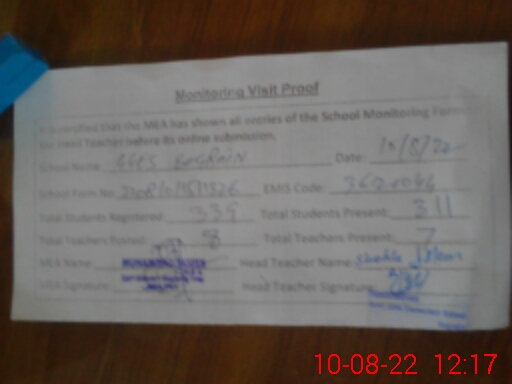 | Attendance Register | Head Teacher | MEA with School | Visit Proof |