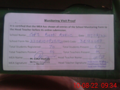 | EMIS Code: 36120068 | Name of School: GPS BASTI ARBI P/O SHUJABAD MOZA GAJU HATTA | |||