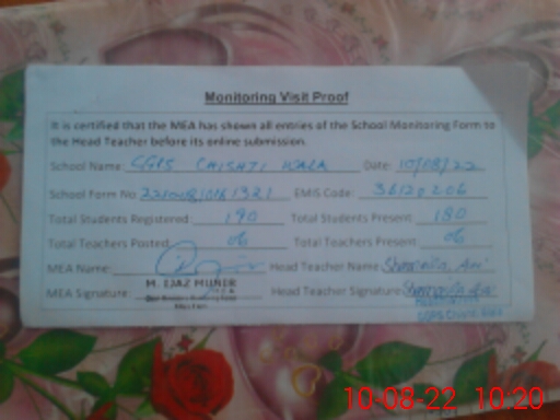 | EMIS Code: 36120206 | Name of School: GGPS CHISHTI WALA SHUJABAD | |||