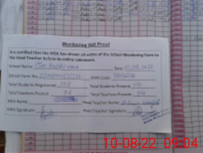 | Attendance Register | Head Teacher | MEA with School | Visit Proof |