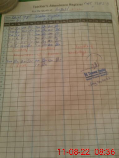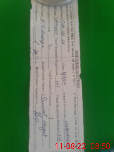 | Attendance Register | Head Teacher | MEA with School | Visit Proof |