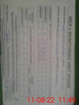 | Certified that this School was Inspected by the Undersigned MEA/DMO Today and the Information Stated Above is as Per Record. | |||||