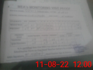 | Attendance Register | Head Teacher | MEA with School | Visit Proof |