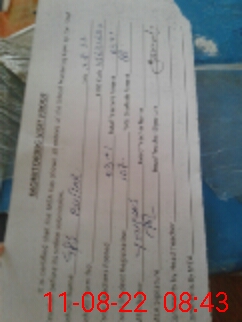 | Monitoring Date: 11-08-2022 | Start Time: 11-08-2022 08:11 AM | End Time: 11-08-2022 08:44 AM | Name of MEA: YO**** AL**** SH**** | |