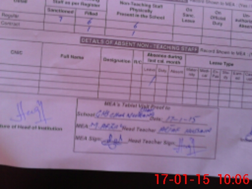| Attendance Register | Head Teacher | MEA with School | Visit Proof |