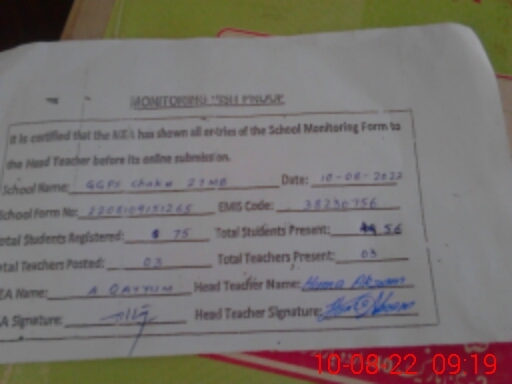 | EMIS Code: 38230756 | Name of School: GGPS CHAK NO 27 MB | |||
