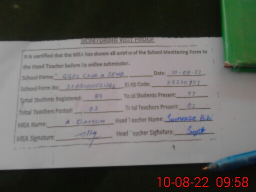 | EMIS Code: 38230757 | Name of School: GGPS CHAK NO 28 MB | |||