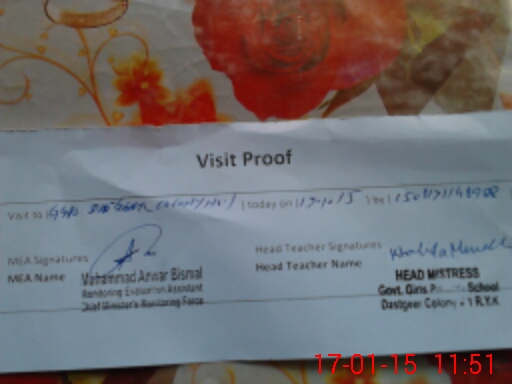 | Attendance Register | Head Teacher | MEA with School | Visit Proof |