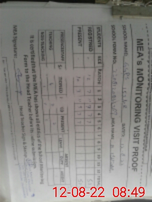 | Monitoring Date: 12-08-2022 | Start Time: 12-08-2022 08:23 AM | End Time: 12-08-2022 08:50 AM | Name of MEA: M.Is**** (S**** 03**** | |