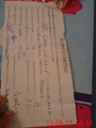 | EMIS Code: 31310259 | Name of School: GPS CHAK NO 64 P | |||