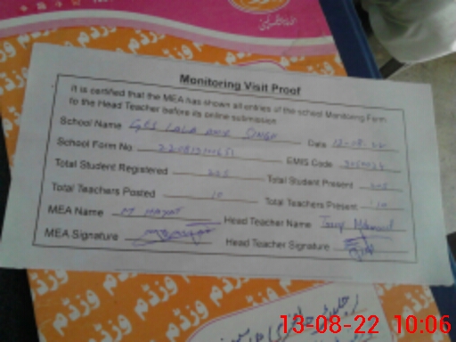 | Certified that this School was Inspected by the Undersigned MEA/DMO Today and the Information Stated Above is as Per Record. | |||||