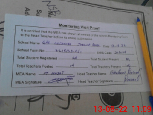 | Attendance Register | Head Teacher | MEA with School | Visit Proof |