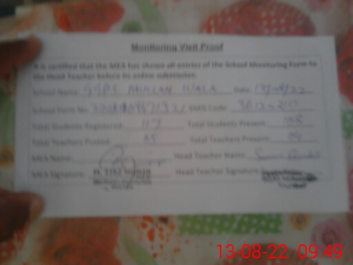 | EMIS Code: 36120210 | Name of School: GGPS MULLAN WALA SHUJABAD | |||
