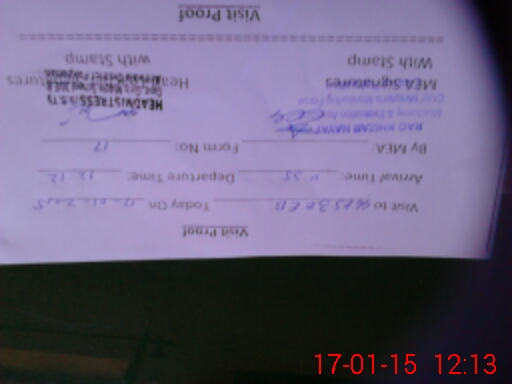| Monitoring Date: 17-01-2015 | Start Time: 17-01-2015 11:34 AM | End Time: 17-01-2015 12:13 PM | Name of MEA: Kh**** Ha**** (R**** | |