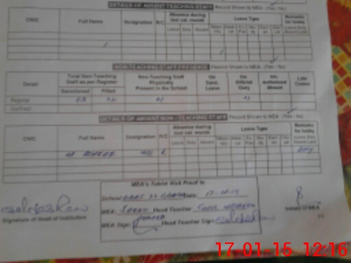 | Attendance Register | Head Teacher | MEA with School | Visit Proof |
