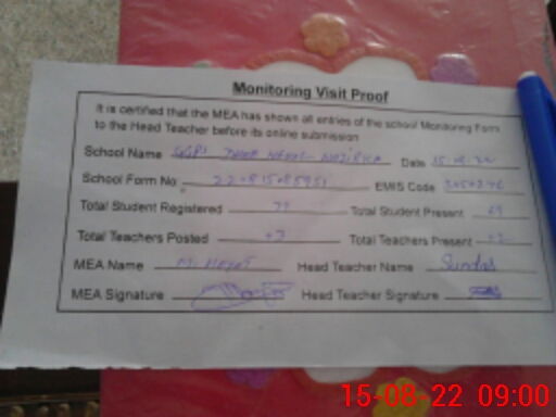 | Certified that this School was Inspected by the Undersigned MEA/DMO Today and the Information Stated Above is as Per Record. | |||||