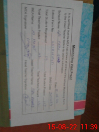 | Monitoring Date: 15-08-2022 | Start Time: 15-08-2022 11:22 AM | End Time: 15-08-2022 11:41 AM | Name of MEA: Mu**** Ha**** BN**** 32 | |