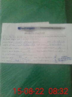 | Monitoring Date: 15-08-2022 | Start Time: 15-08-2022 07:43 AM | End Time: 15-08-2022 08:34 AM | Name of MEA: Ab**** Gh**** | |