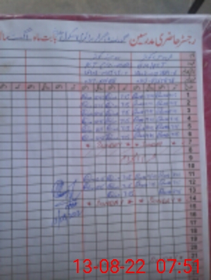 | CNIC | Full Name | Designation | R/C | Absence During Last Calender Month |