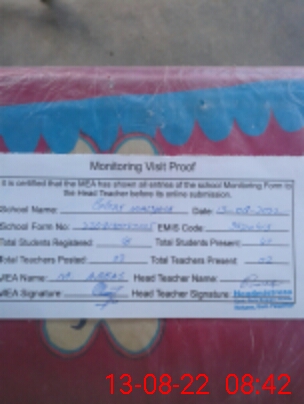 | Attendance Register | Head Teacher | MEA with School | Visit Proof |