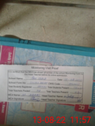 | Attendance Register | Head Teacher | MEA with School | Visit Proof |