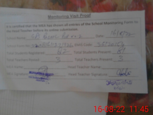 | EMIS Code: 36120154 | Name of School: GPS RASOOL PUR NO. 2 SHUJA ABAD | |||
