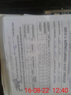| Certified that this School was Inspected by the Undersigned MEA/DMO Today and the Information Stated Above is as Per Record. | |||||