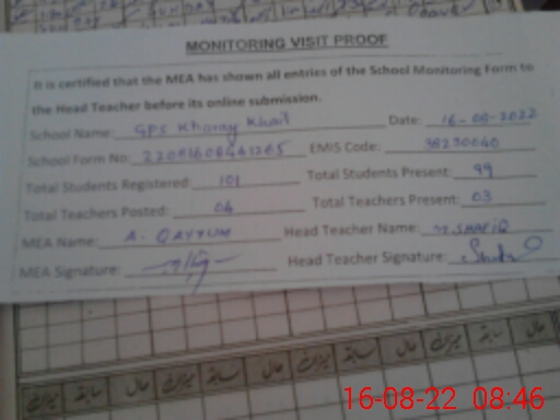 | EMIS Code: 38230040 | Name of School: GPS KHARAY KHAIL | |||