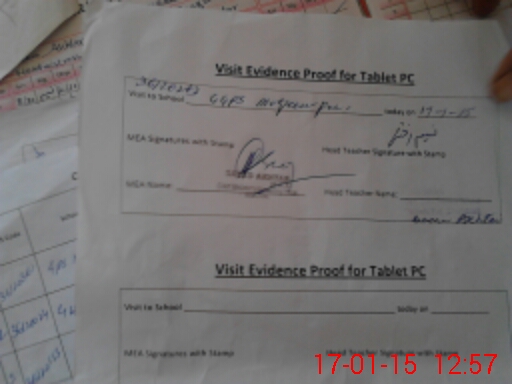 | Attendance Register | Head Teacher | MEA with School | Visit Proof |