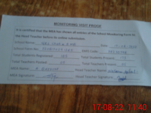 | EMIS Code: 38230798 | Name of School: GES CHAK 8 MB | |||