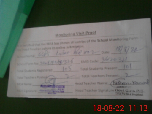 | Certified that this School was Inspected by the Undersigned MEA/DMO Today and the Information Stated Above is as Per Record. | |||||