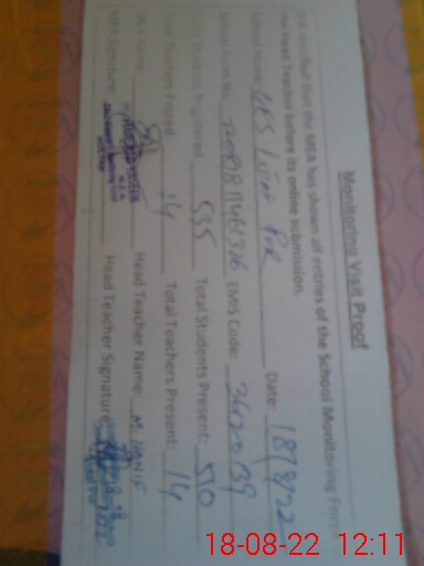 | Certified that this School was Inspected by the Undersigned MEA/DMO Today and the Information Stated Above is as Per Record. | |||||