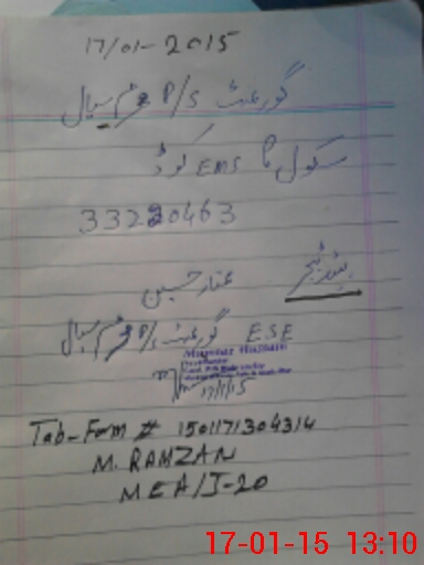 | Name: MU**** AB**** RA**** Designation: (School Headmaster's/Headmistress's) PST Phone/Cell Number: 03**** |