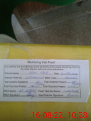 | Attendance Register | Head Teacher | MEA with School | Visit Proof |