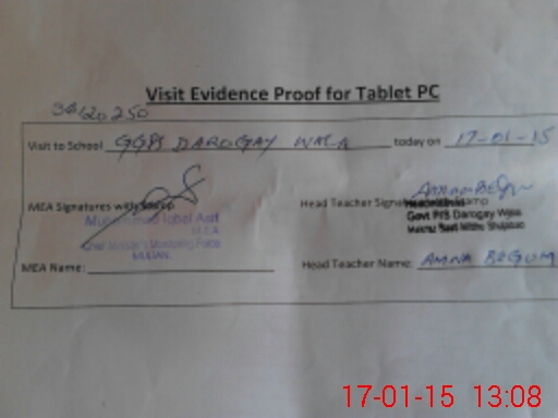 | Attendance Register | Head Teacher | MEA with School | Visit Proof |