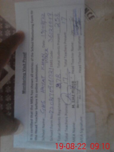 | EMIS Code: 36120019 | Name of School: GHS HAYAT KHAN WALA SHUJABAD | |||