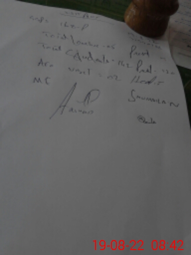 | Monitoring Date: 19-08-2022 | Start Time: 19-08-2022 08:24 AM | End Time: 19-08-2022 08:43 AM | Name of MEA: Ar**** Na**** | |