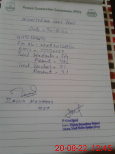 | Monitoring Date: 20-08-2022 | Start Time: 20-08-2022 11:53 AM | End Time: 20-08-2022 12:49 PM | Name of MEA: Za**** Me**** | |