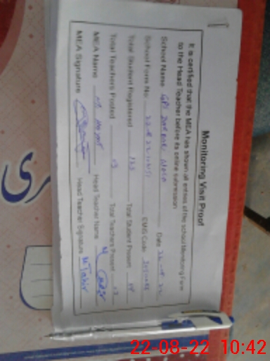 | Attendance Register | Head Teacher | MEA with School | Visit Proof |