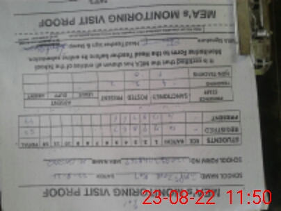 | Attendance Register | Head Teacher | MEA with School | Visit Proof |