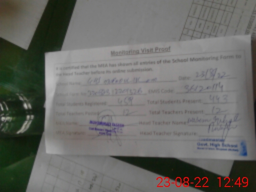 | Certified that this School was Inspected by the Undersigned MEA/DMO Today and the Information Stated Above is as Per Record. | |||||