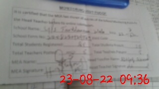 | Attendance Register | Head Teacher | MEA with School | Visit Proof |